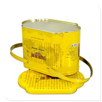 這款海參手提罐,手提式罐子,方便消費者攜帶,由三片鐵組成,分別為蓋、身、底三個部分,蓋為外卷線天地蓋,身印刷有文字圖案,可根據您的產品需求做LOGO印刷處理,突出產品的特點,吸引消費者的目光。