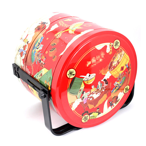 該款圓形雙層手提年貨禮品包裝鐵罐為時尚手提式造型設計,290*240mm尺寸,能滿足大容量產品包裝需求。為了順應多樣化的市場包裝需求,此款圓形雙層手提年貨禮品包裝鐵罐可做成正方形、心形、橢圓形、車形、書本形等異形造型