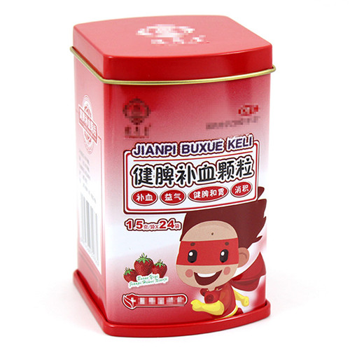 密封拍底健脾補血顆粒藥品鐵盒包裝設(shè)計_醫(yī)藥保健品鐵盒生產(chǎn)廠家